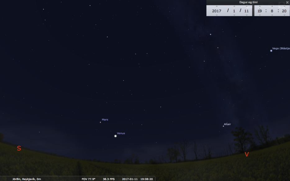 Þessa dagana skín Venus langskærast á kvöldhimninum í suðvestri. Ástarstjarnan hefur vakið talsverða athygli enda ægibjört og fögur.
