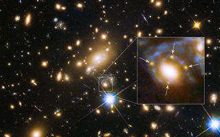 Stjörnufræðingar hafa í fyrsta sinn komið auga á fjórar myndir af einni og sömu fjarlægu sprengistjörnunni með hjálp þyngdalinsu.