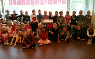 Nemendur í Krikaskóla í Mosfellsbæ taka á móti Galíleósjónaukanum. Mynd: Sævar Helgi Bragason (með iPhone)