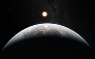 Sýn listamanns á reikistjörnu á braut um HD 85512, stjörnu sem líkist sólinni okkar, í stjörnumerkinu Seglinu. Þessi reikistjarnan er ein sextán risajarða sem fundust með HARPS mælitækinu á 3,6 metra sjónaukanum í La Silla stjörnustöð ESO í Chile. Reikistjarnan er um 3,6 sinnum massameiri en jörðin og situr við brún lífbeltis stjörnunnar, svæðis þar sem fljótandi vatn og jafnvel líf gæti þrifist. Mynd: ESO/M. Kornmesser