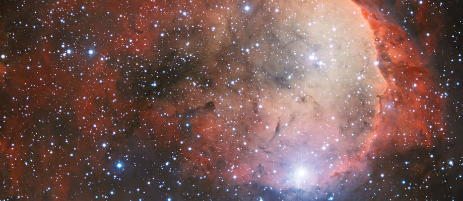 Mynd Wide Field Imager á 2,2 metra MPG/ESO sjónaukanum í La Silla stjörnustöðinni af stjörnumyndunarsvæðinu NGC 3324. Sterk útfjólublá geislun frá nokkrum af massamestu bláhvítu stjörnum NGC 3324 hefur sorfið holrúm í gasinu og rykinu. Litadýrðina má líkja rekja til stjarnanna sem lýsa upp gasið. Mynd: ESO