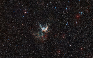 Þessi ljósmynd VLT af Þórshjálmsþokunni var tekin í tilefni 50 ára afmælis ESO þann 5. október 2012 með hjálp Brigitte Bailleul — vinningshafanum í Tístaðu þig til VLT leik ESO. Athuganirnar voru sendar út í beinni útsendingu á internetinu frá Paranal stjörnustöðinni í Chile. Þetta fyrirbæri, sem einnig er þekkt sem NCG 2359, er stjörnumyndunarsvæði í Stórahundi. Hjálmlaga þokan er í um 15.000 ljósára fjarlægð frá jörðinni og meira en 30 ljósár í þvermál. Hjálmurinn er gaskúla, mynduð fyrir tilverknað vinds frá bjartri og massamikilli stjörnu nálægt miðju hennar sem blæs burt sameindaskýinu í kring. Mynd: ESO/B. Bailleul