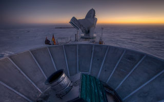 Sólin sest á bak við BICEP2 á ísbreiðu Suðurskautslandsins. Mynd: Steffen Richter, Harvard University
