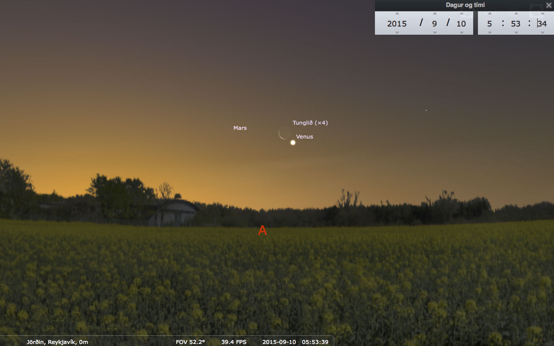 Tunglmyrkvi og reikistjörnur á morgunhimninum er meðal þess sem prýðir stjörnuhimininn í september 2015.