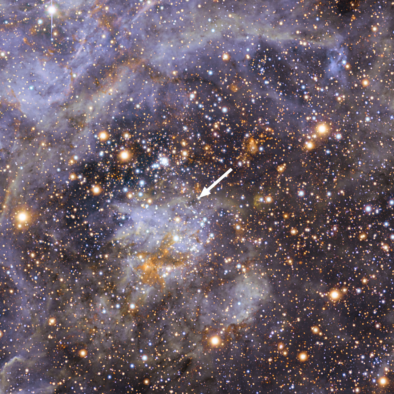 Örin á myndinni bendir á umrædda stjörnu sem er innan í mikilli geimþoku sem við höfum áður rætt um. Til þess að útskýra hvers vegna stjarnan snýst svona hratt en hreyfist að sama skapir hægar um geiminn en nágrannar sínir hafa stjörnufræðingar dregið upp líklega ævisögu hennar. Í byrjun gæti hún hafa orðið til með annarri stjörnu sem snerust hvor um aðra. Ef til vill voru stjörnurnar svo nálægt hvor annarri að önnur þeirra dró til sín efni frá hinni og byrjaði við það snúast sífellt hraðar.