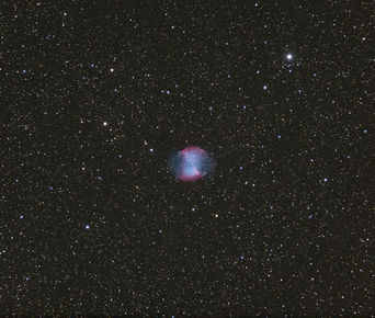 Allar stjörnur deyja á endanum. Sumar springa en flestar deyja hægt og rólega með því að varpa frá sér ystu efnislögum sínum út í geiminn. Þannig fer fyrir sólinni okkar og þannig fór fyrir fyrrum stjörnunni sem hér sést. Þetta er Dymbilþokan eða Messier 27 í stjörnumerkinu Litlarefi. Hún er hringþoka, leifar stjörnu.