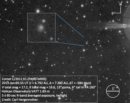 Þegar halastjarnan fannst var hún 7,2 stjarnfræðieiningar frá sólinni (tæplega 1,1 milljarður km) í stjörnumerkinu Úlfinum.