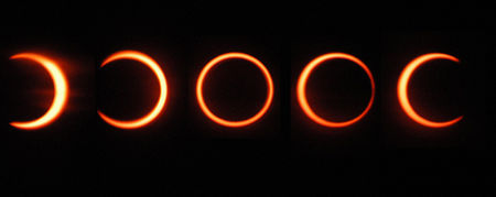 | Sólmyrkvi hefst þegar tunglið byrjar að færast inn fyrir sólskífuna. Mynd: Gunnlaugur Björnsson/Hermann Hafsteinsson/Stjörnufræðivefurinn |
