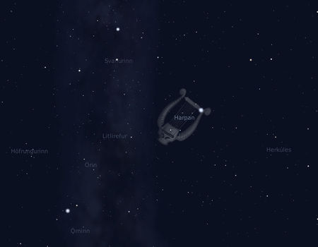 | Stjörnumerkið Harpan og nágrenni. Mynd úr Stellarium hugbúnaðinum |