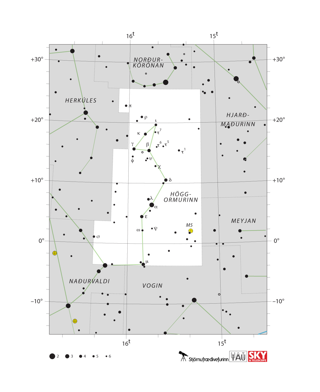 Stjörnukort af Höggorminum í prentvænni útgáfu er að finna hér.