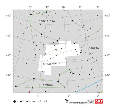 | Stjörnumerkið Litlaljón og nágrenni. Mynd úr Stellarium hugbúnaðinum |