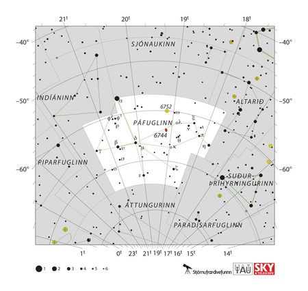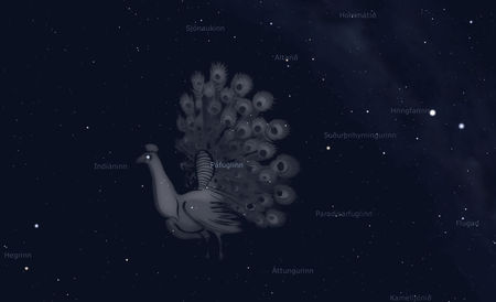 Stjörnukort af Páfuglinum í prentvænni útgáfu má nálgast hér.