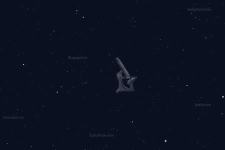| Stjörnumerkið Smásjáin og nágrenni. Mynd úr Stellarium hugbúnaðinum |